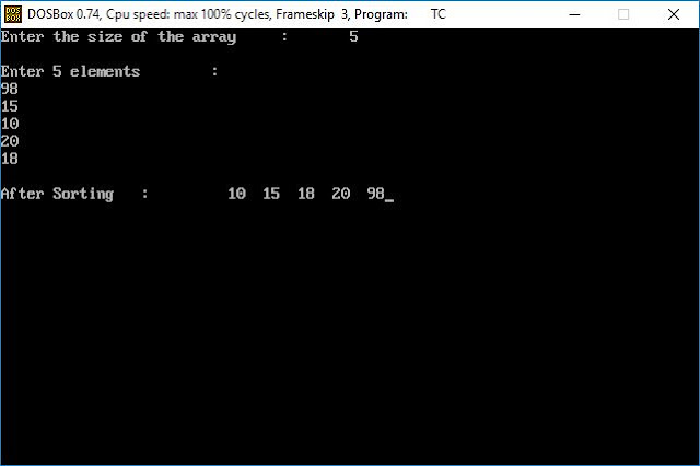 int a[100],n,i,j,temp;